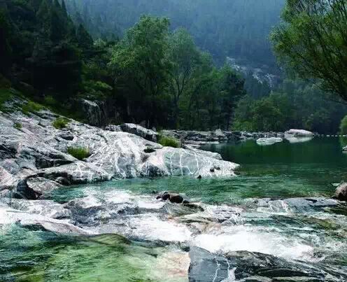 溪水瀑布、怪石浅滩、岩石峭壁,看似杂乱无章却都是浑然天成。低头是清澈的溪水,成群的螭霖鱼在脚边游过;抬头看是蓝天下碧青的巍巍高山,而你就在青山碧水之间。这样的景色,人生难得几回!