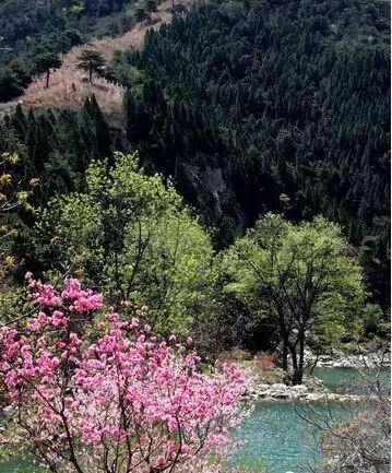 春天,是万台山颜色最丰富的季节。从山谷往上看,绿色、黄色、红色间隔分布,一层一层倒映在水中。山下有住的居民,每天面对的都是这样的美景,想想这些,真是对他们羡慕不已。